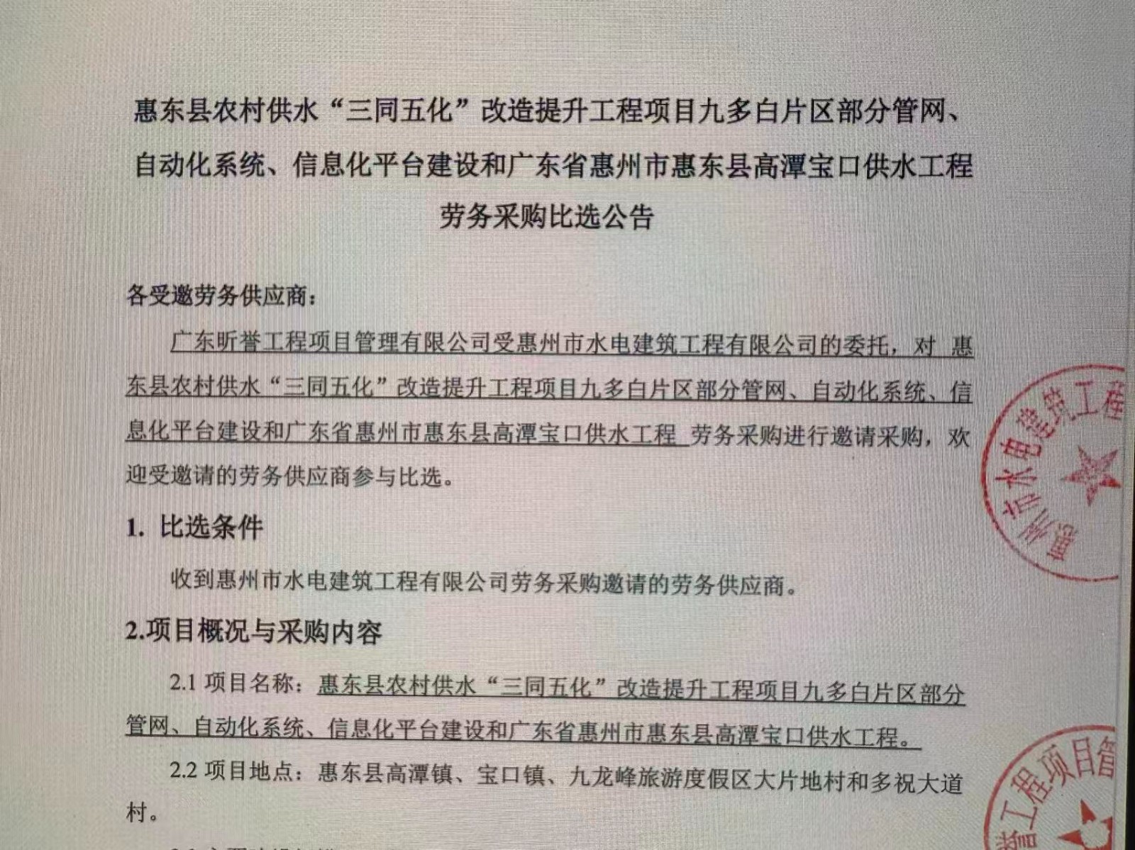 廣東省惠州市中心城區地下管網系統提升工程-內街小巷排水管網病害修復及錯混接改造項目一期施工勞務采購比選公告……